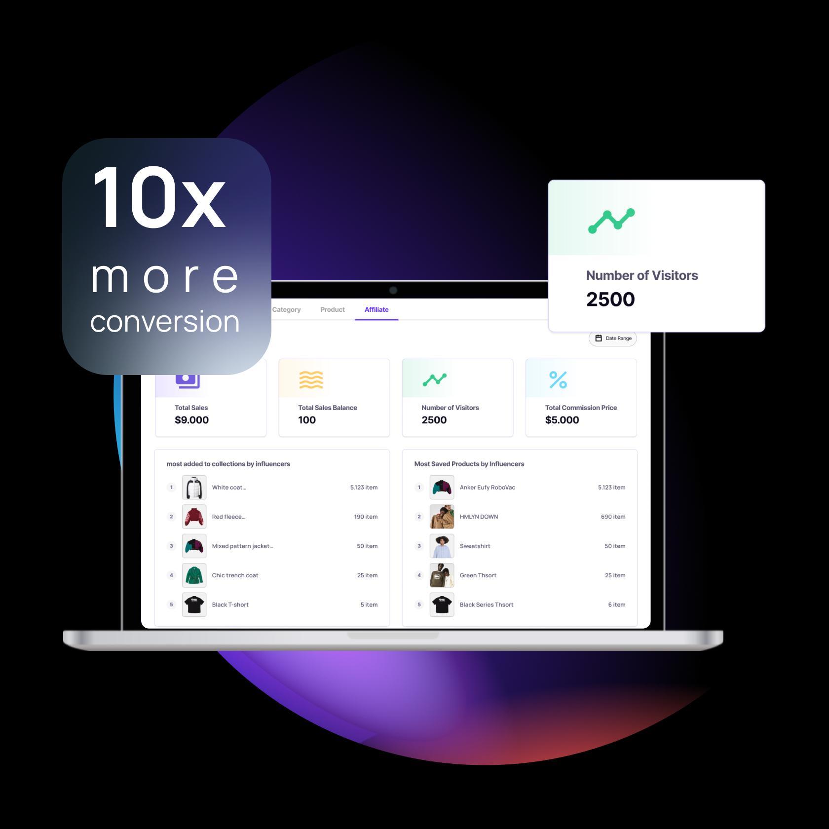 Easily analyze your daily, weekly, monthly, and yearly sales, identify your top-performing influencers, and optimize your strategy based on these insights.